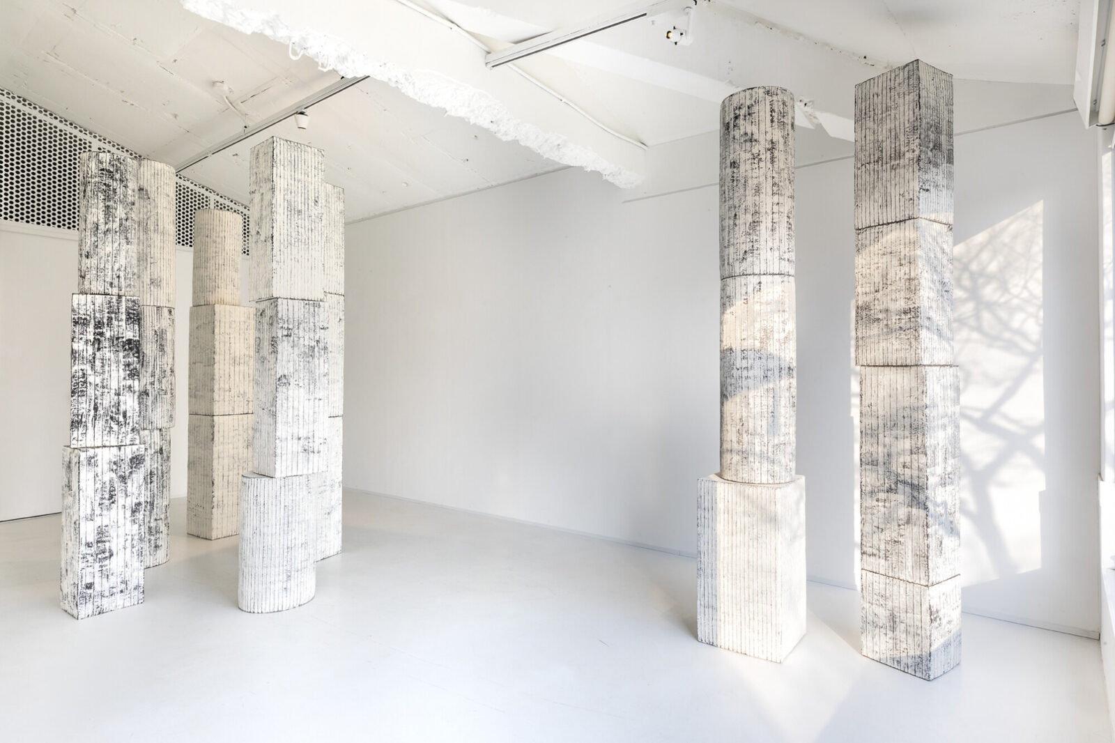Kim works through the physicality of clay—pushing, stacking, and scoring its surface—to visualize this noise and to trace the fissures and interferences that create memory itself. Her works fall largely into two directions: the column sculptures that arise from the desire to silence inner noise, and the paintings that weave together personal and universal time.